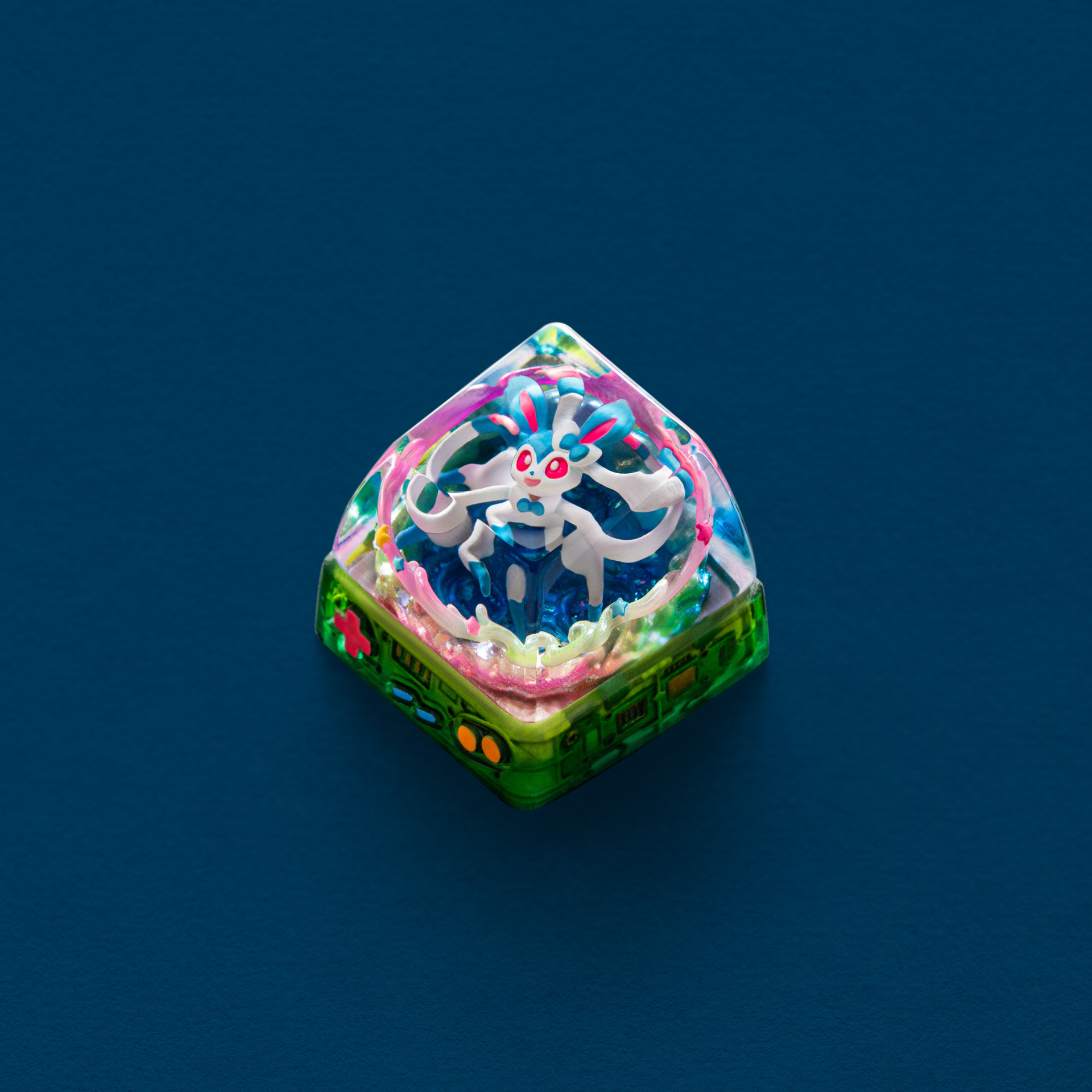 Carefully sculpted and hand-painted, the shiny color palette adds a subtle glow without losing Sylveon’s signature charm. Whether you’re a longtime Sylveon fan or simply drawn to its serene beauty, this Shiny Sylveon keycap is a graceful addition that turns every keypress into a quiet moment of magic.