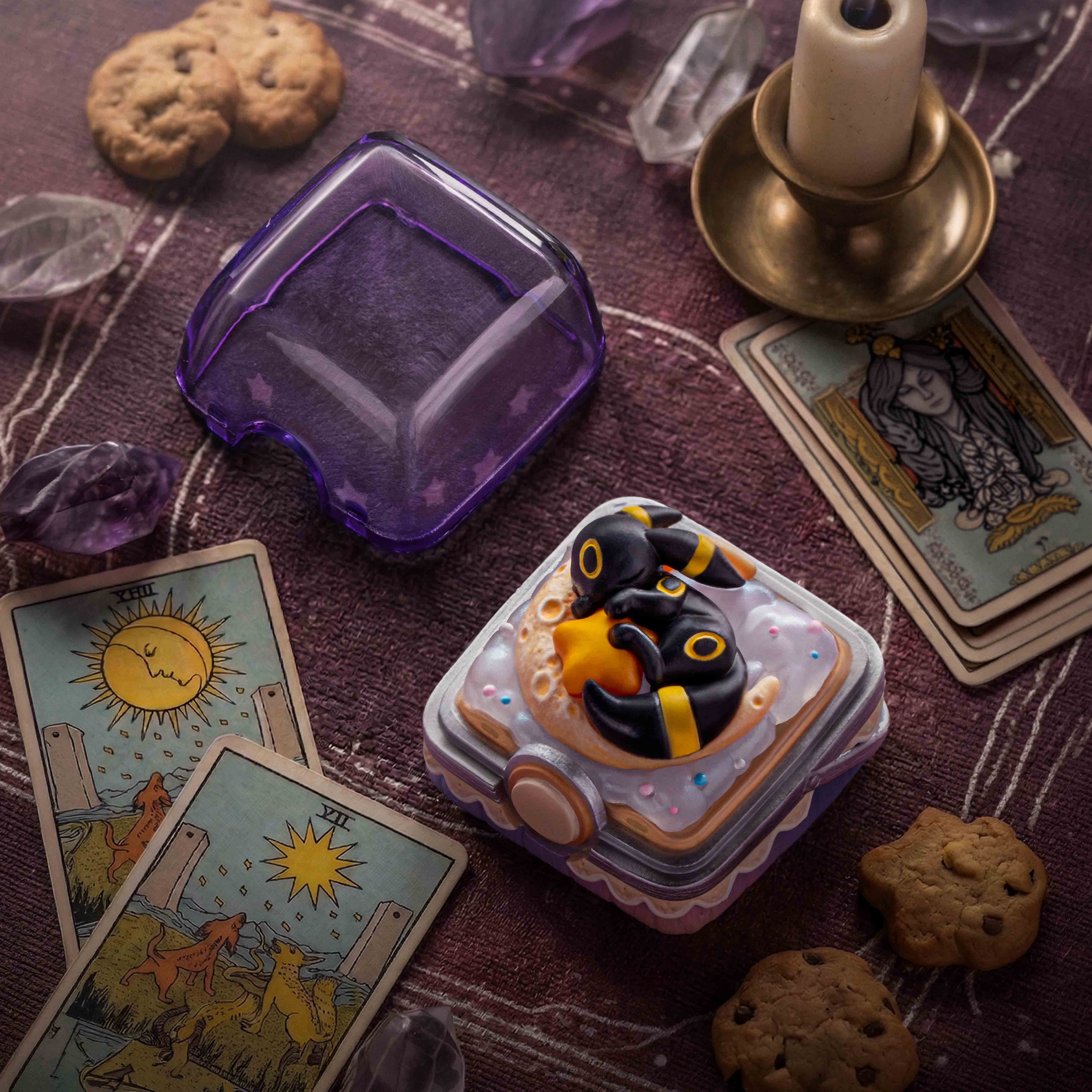 Umbreon curls into itself, holding a small star close, resting somewhere between clouds and moonlight. There’s no movement here, only a deep, gentle stillness, like the world has slowed to match its breathing. The glow is faint, steady, just enough to be felt without ever disturbing the calm.