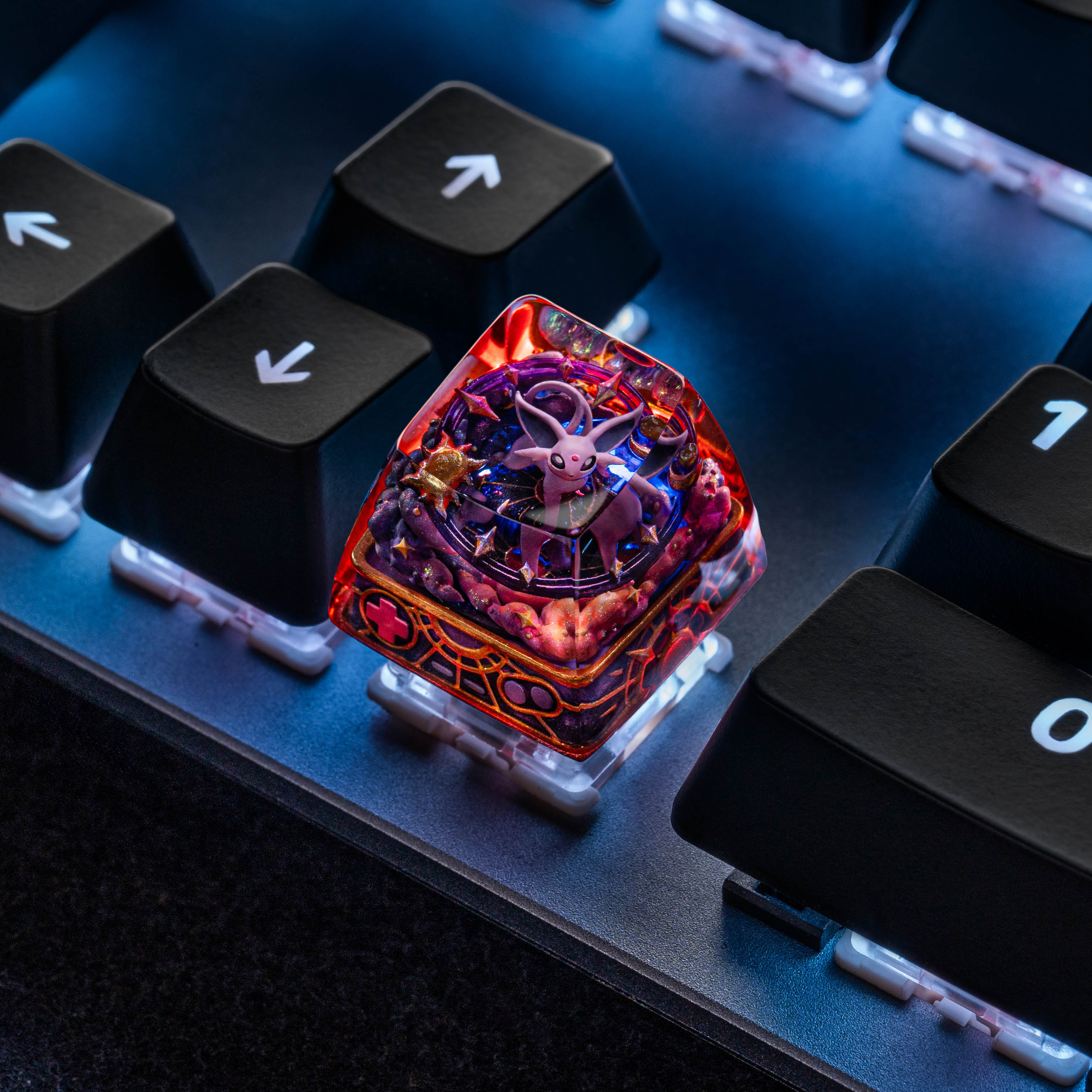 Espeon embodies elegance and mysticism with its sleek, lilac-colored fur and its signature forked tail. Known as the Sun Pokémon, Espeon possesses incredible psychic abilities, heightened by its deep bond with its Trainer. Its gem-like forehead glows when it unleashes powerful telekinetic attacks, making it both graceful and formidable. Inspired by its enigmatic aura, this artisan keycap brings a touch of mystery and sophistication to your keyboard setup!