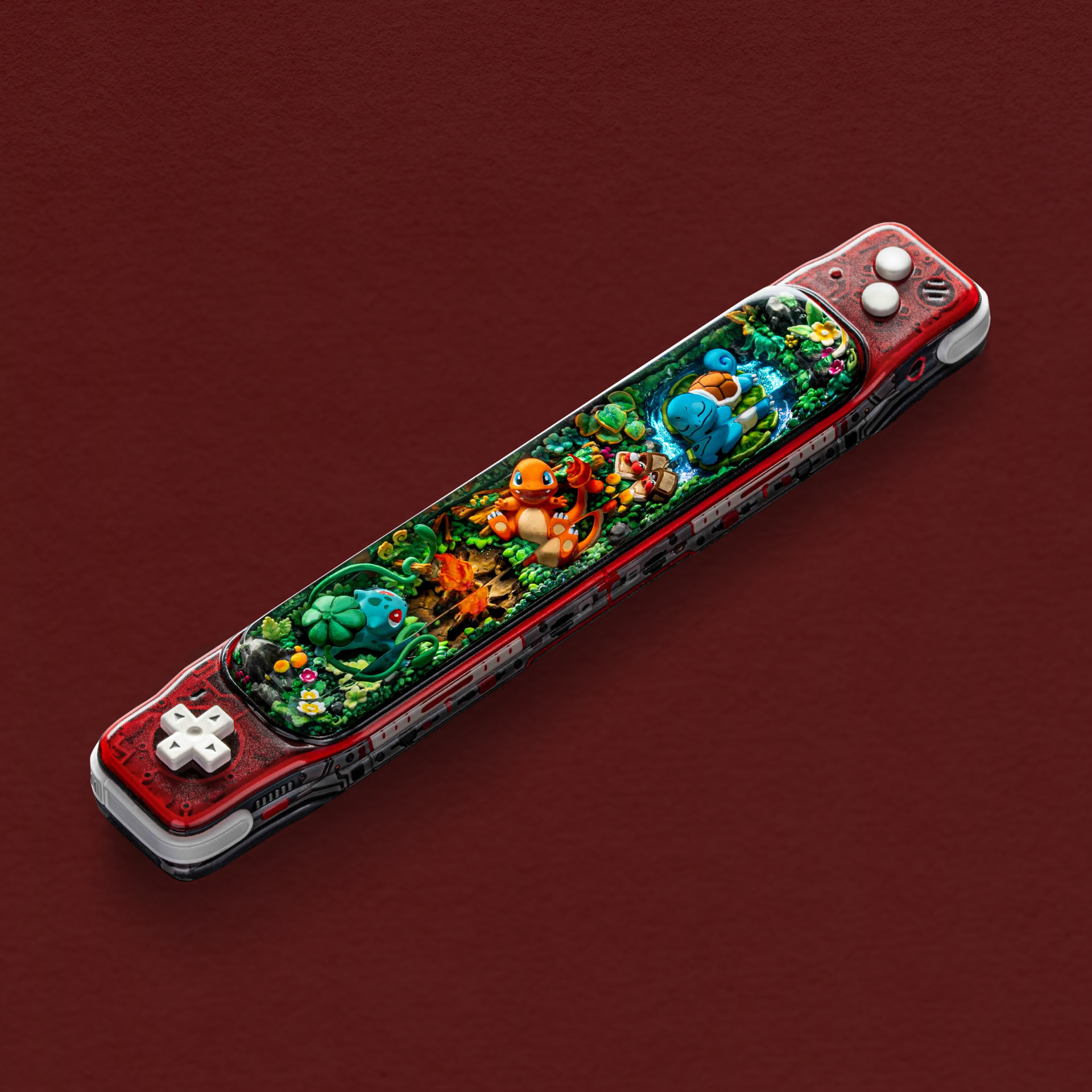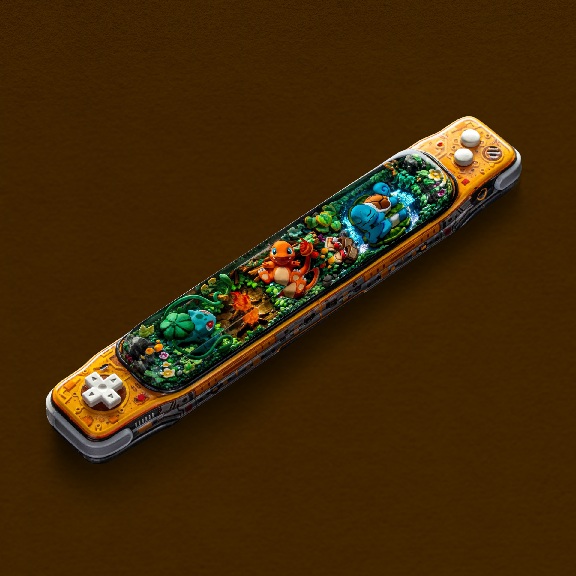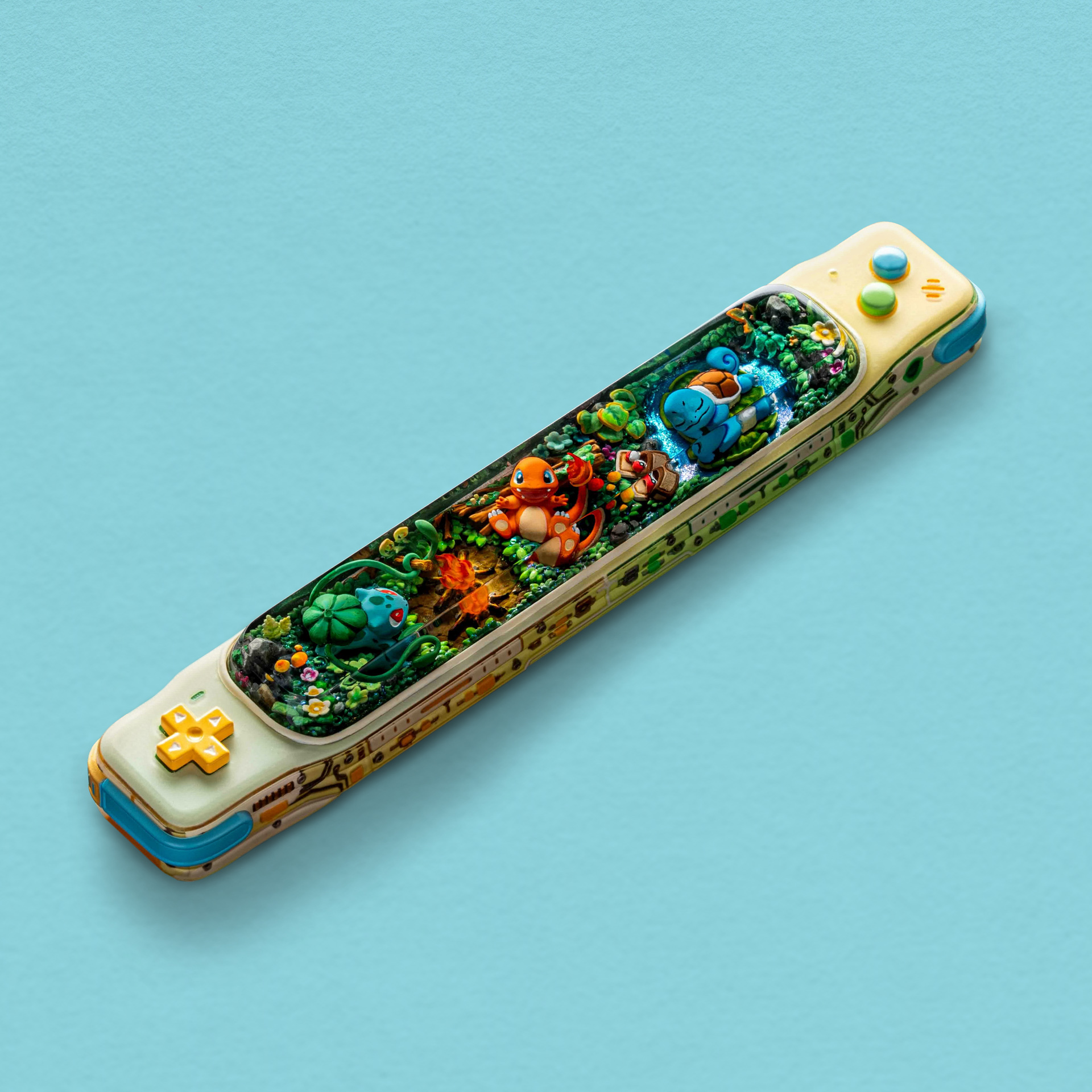 Meticulously sculpted and hand-painted, each Pokémon retains its iconic character: Bulbasaur’s calm and grounded presence, Charmander’s lively flame, and Squirtle’s playful energy. More than a collectible, this spacebar is a tribute to beginnings, nostalgia, and the timeless bond between Trainers and the Pokémon that started it all.