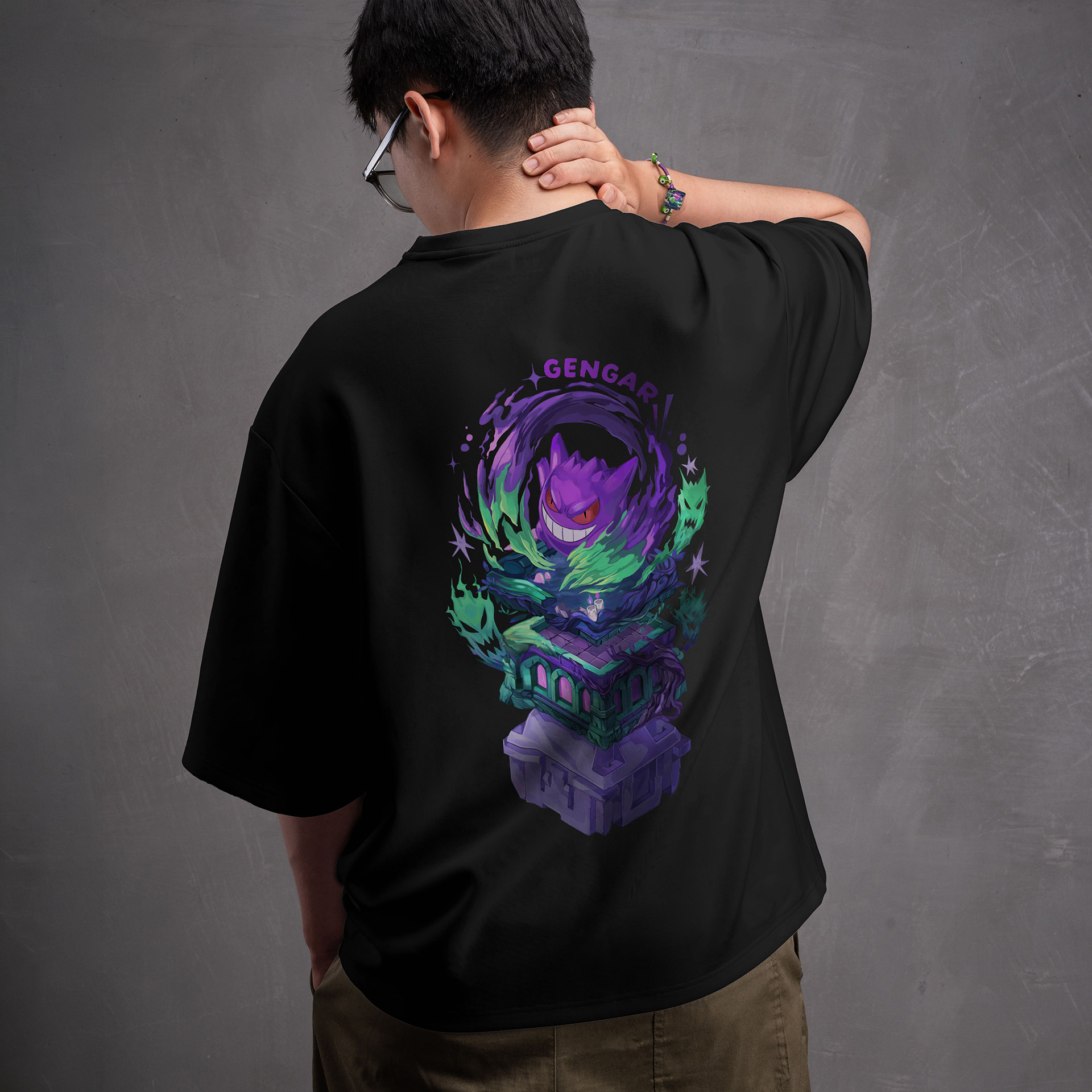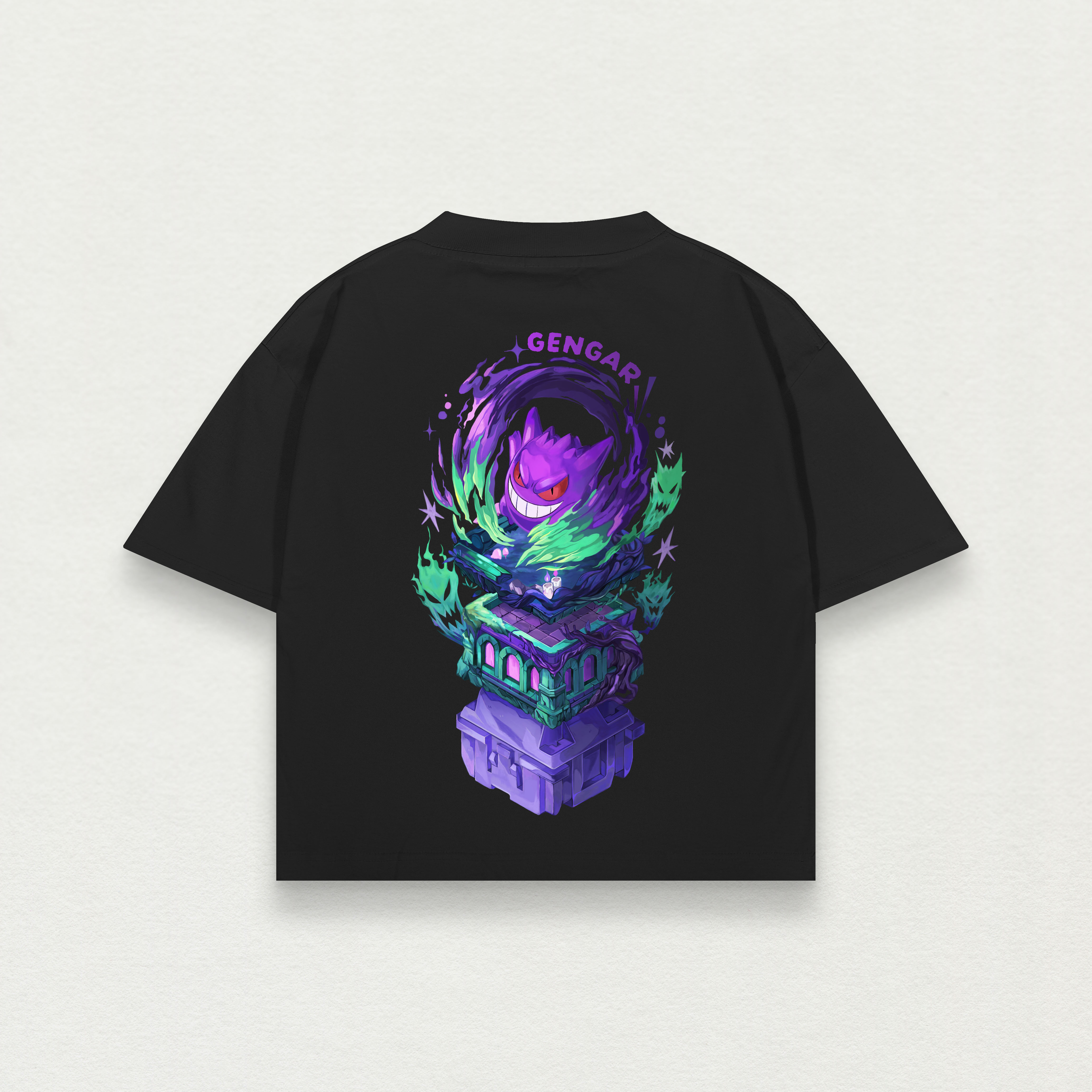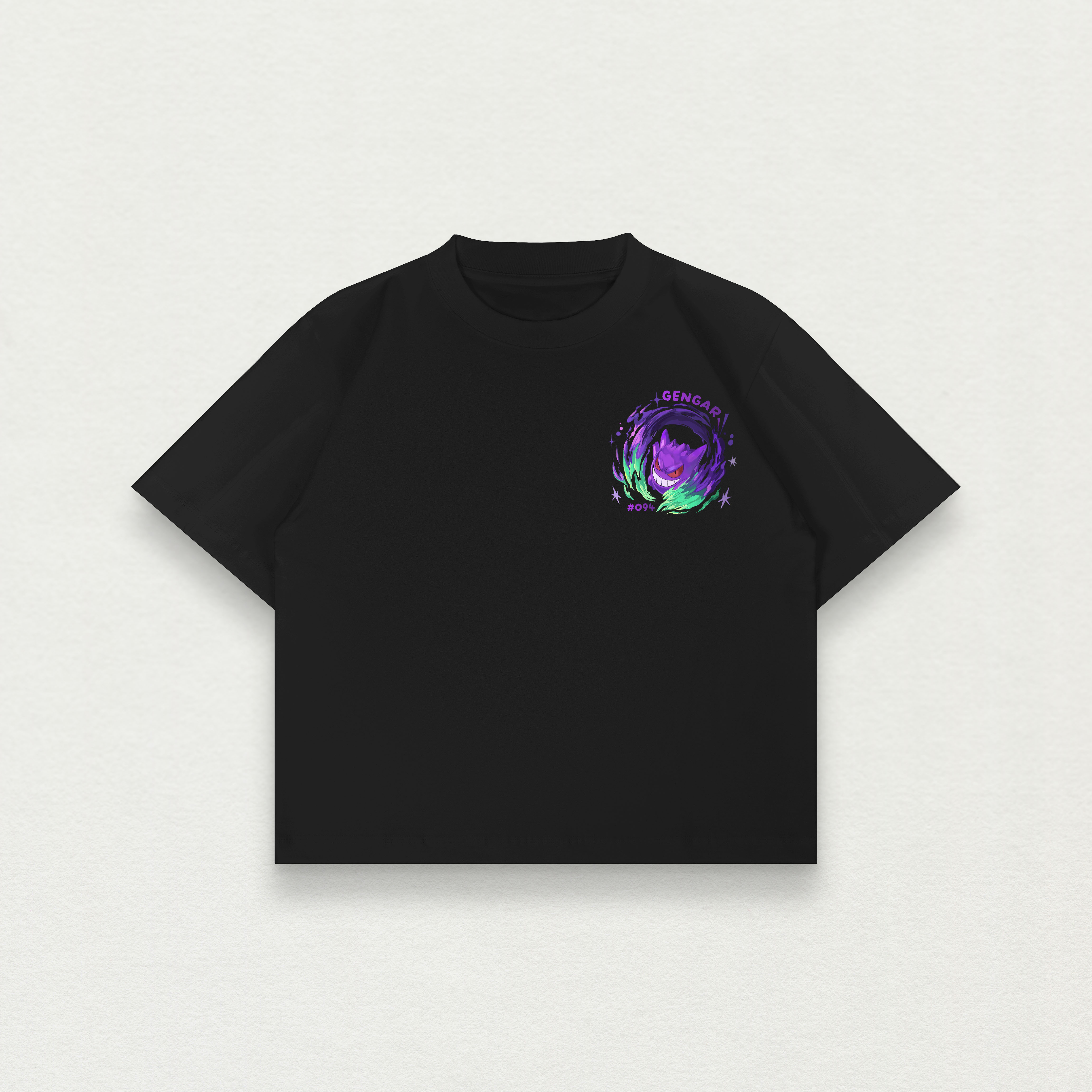 The design references the spirit of Gengar Nomad, carrying forward its attitude and character presence while reinterpreting it on fabric. At its core, this tee represents both our passion for Pokémon and our appreciation for Gengar as a character. It is not a departure from what we do, but a continuation of it in a different medium.