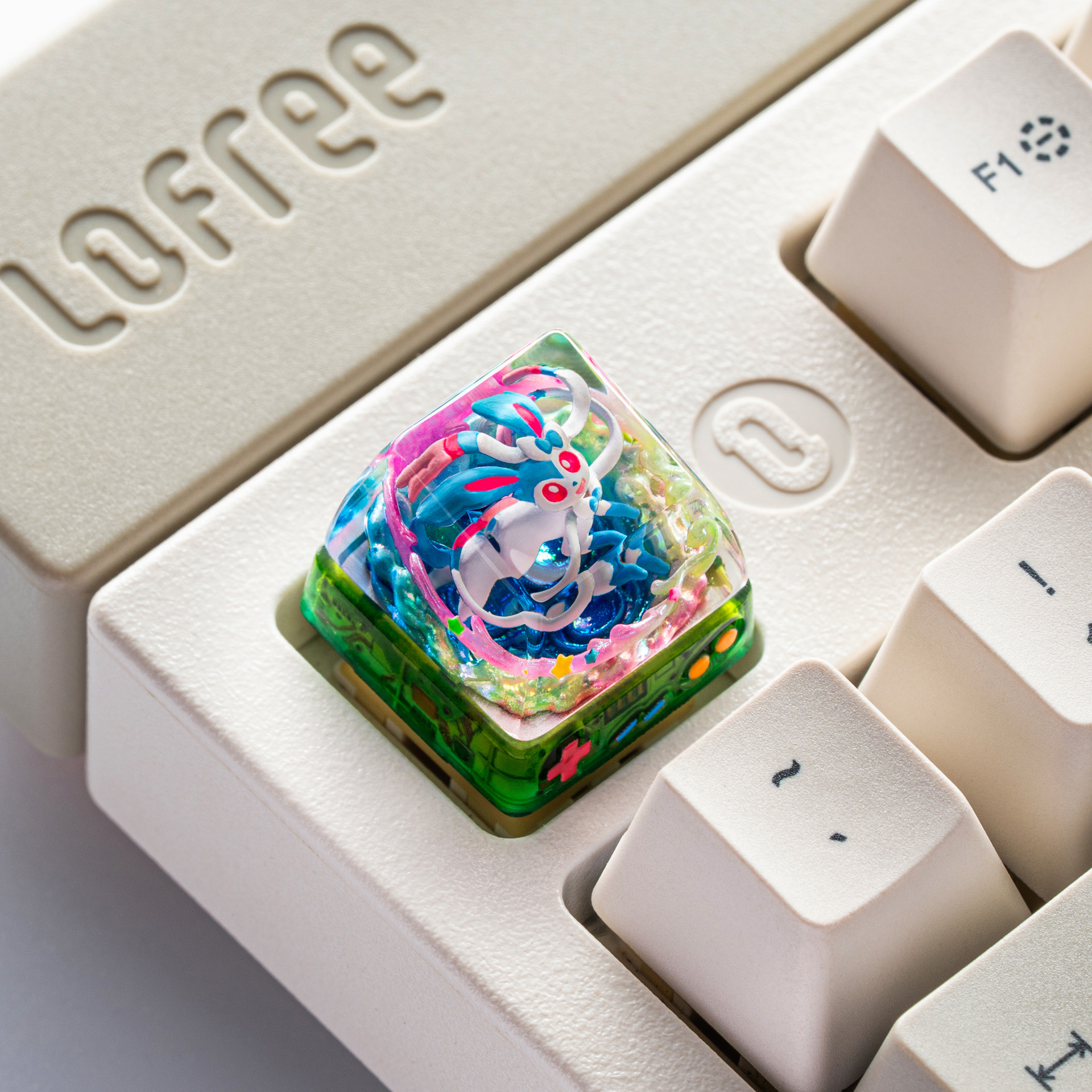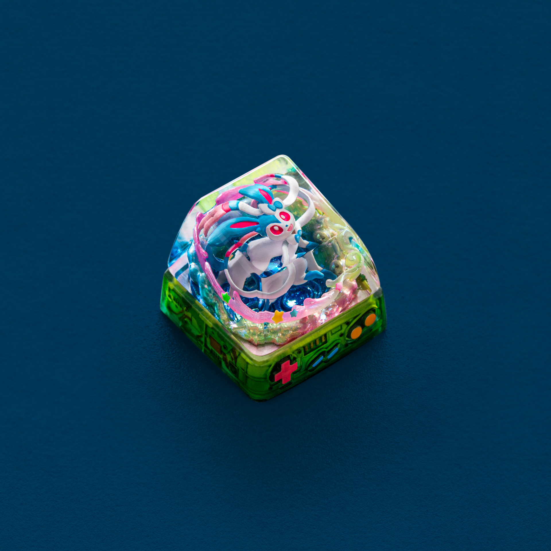 Carefully sculpted and hand-painted, the shiny color palette adds a subtle glow without losing Sylveon’s signature charm. Whether you’re a longtime Sylveon fan or simply drawn to its serene beauty, this Shiny Sylveon keycap is a graceful addition that turns every keypress into a quiet moment of magic.