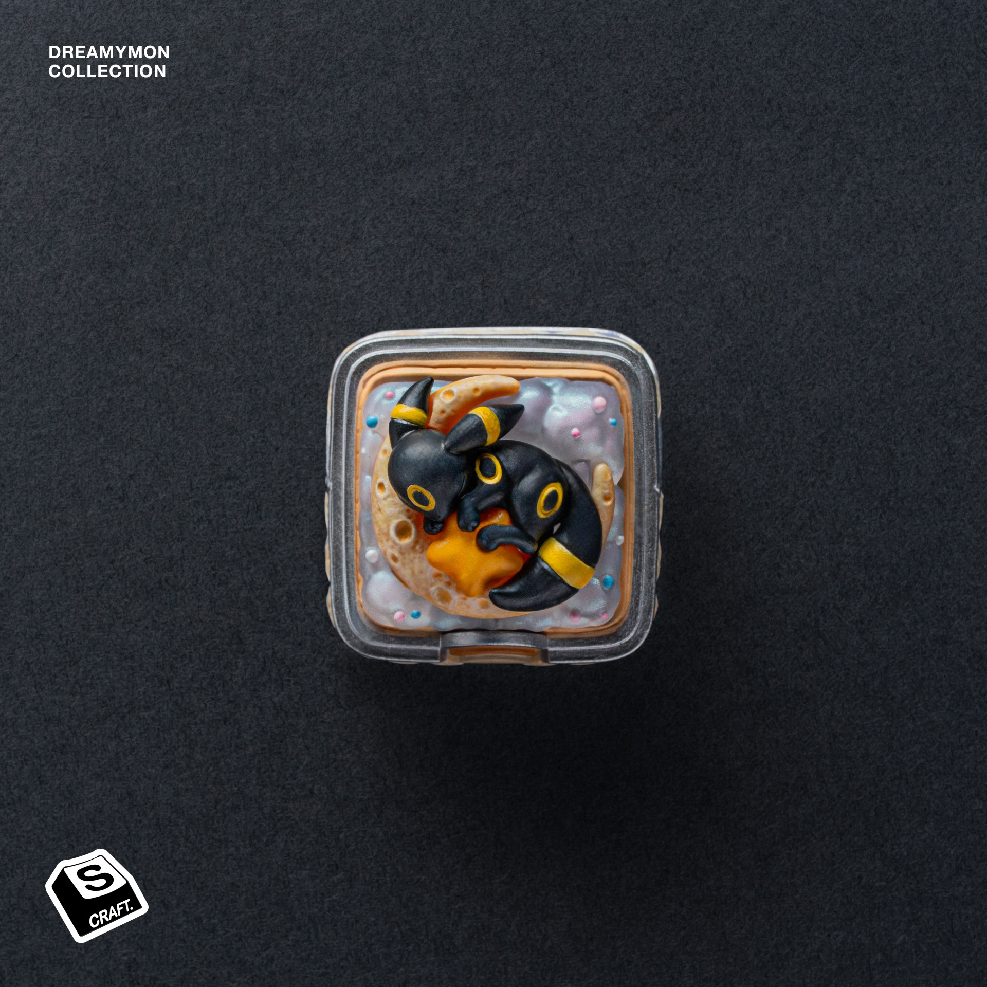Umbreon curls into itself, holding a small star close, resting somewhere between clouds and moonlight. There’s no movement here, only a deep, gentle stillness, like the world has slowed to match its breathing. The glow is faint, steady, just enough to be felt without ever disturbing the calm.