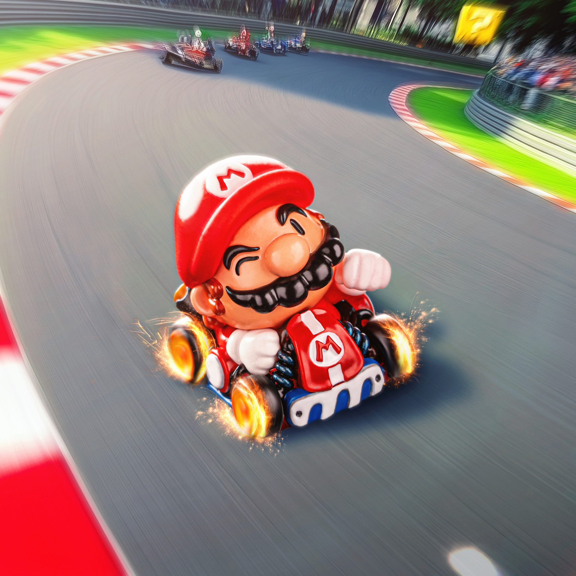 The fearless racer of the Mushroom Kingdom. Always ready to hit the track, Mario combines his cheerful spirit with unshakable determination. Whether he’s drifting through sharp corners or dodging shells, he races not just to win — but to have fun along the way.